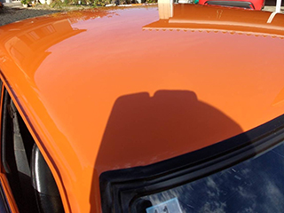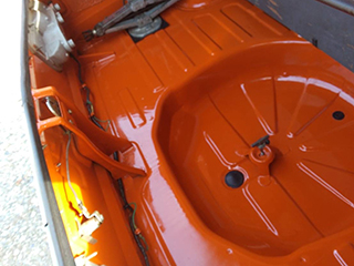 ボディカラーは純正カラーのモンテローザオレンジ、コーションプレートのカラーコードと同じです。
