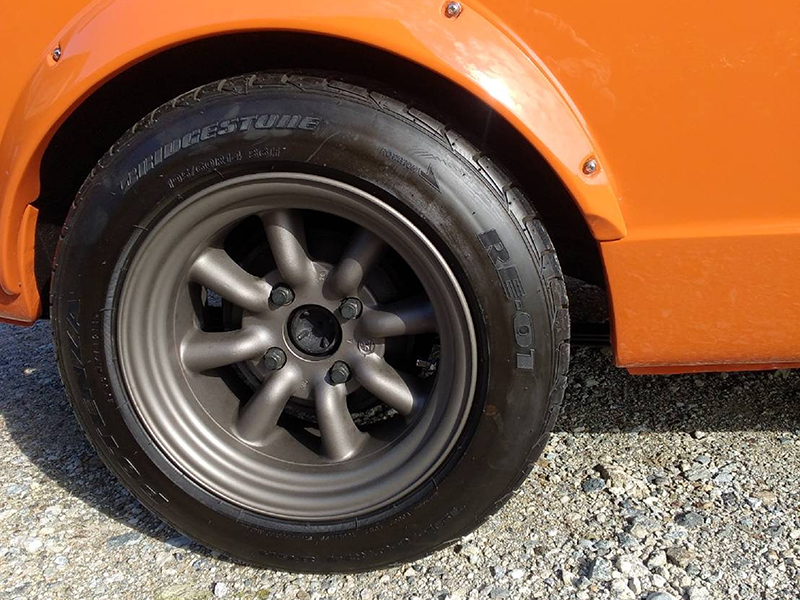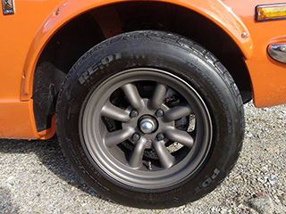 ホイールはワタナベのアルミホイール、タイヤサイズは195/60R14です。
