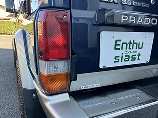 最近では見る機会が減ってきました、同色による補修や色変え塗装の無い、オリジナル塗装を維持しているランドクルーザープラドになります。