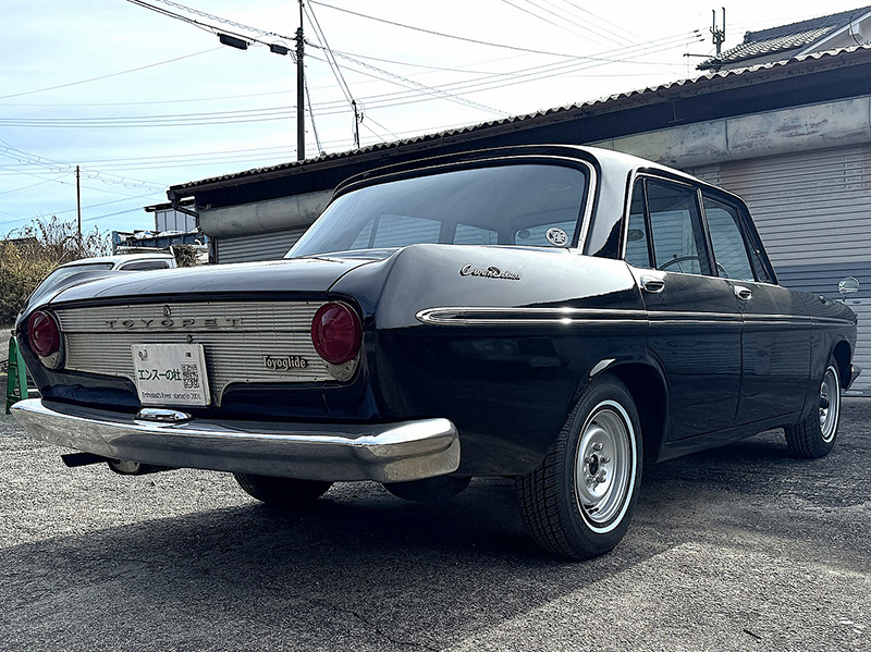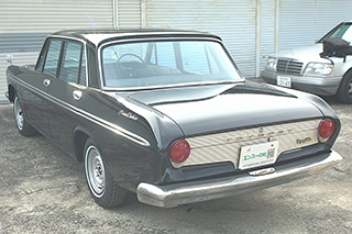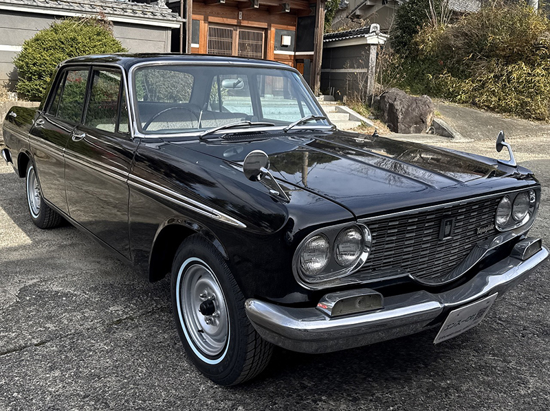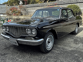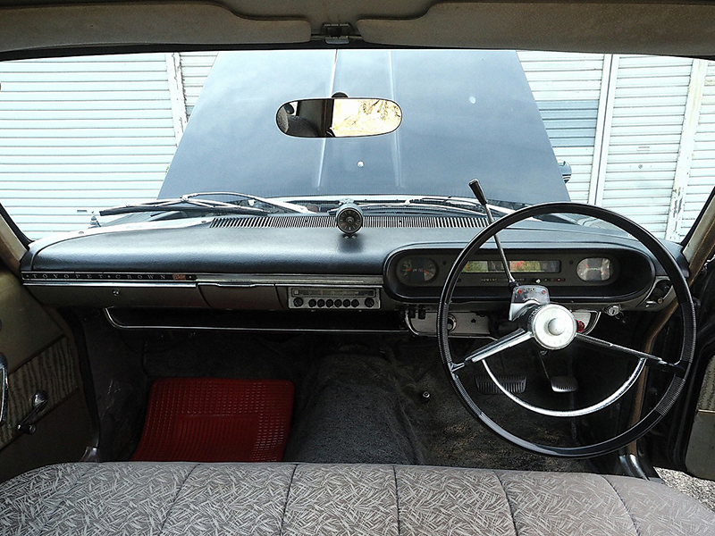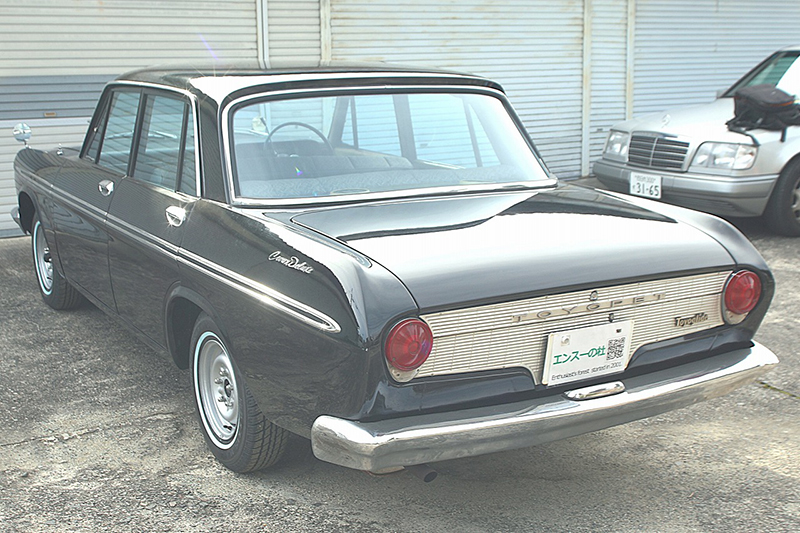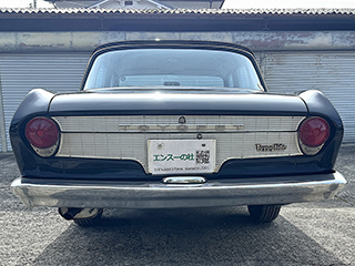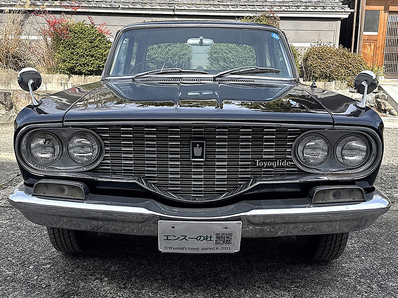 フロントビュー、グリルの中央がななだらかに沈み込み、その中心に「王冠(クラウン)」のエンブレムが鎮座しています。この沈み込みの効果で「クラウン(王冠)」のエンブレムを視覚的な中心にしています。正面から見ますとボンネットの中央に走る2本の盛り上がったライン(プレスライン)が、グリルの沈み込みのラインに向かって収束していくのがわかります。当時のデザインスタッフのレベルの高さがうかがえます。 |