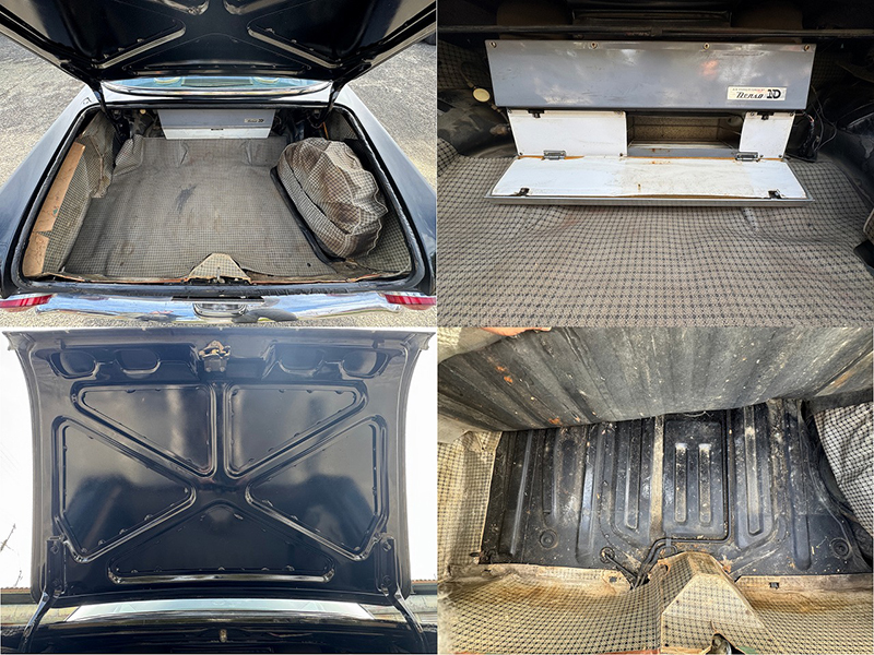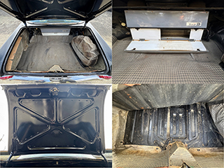 トランクは開口部が広く使い勝手良しです。マットが敷かれてます。鉄板面も良好な状態です。Densoのクーラーユニット、冷蔵庫としても使用可。トランクフード裏面は大変きれいな様子です。 |
