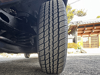 フロントタイヤトレッド面、溝は十分残っています。他のタイヤもほぼ同等の状態です。 |