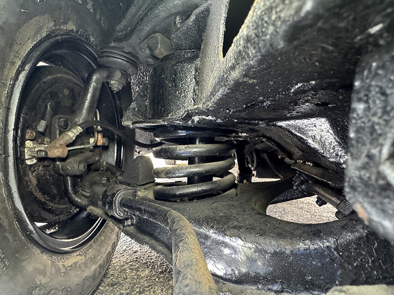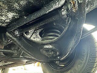 フロントサスペンションロワアーム、シャーシブラックもしっかりと残っており、給脂の様子もうかがえ、とてもよくメンテナンスされているものと思われます。 |