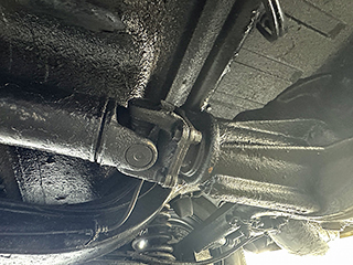 プロペラシャフト、この車の骨格である「X型プラットフォーム」に3ジョイントのプロペラシャフト、センターベアリングもおごられ、当時の高級車としての静粛性を生み出していました。この思想はLS400につながったんでしょう。 |