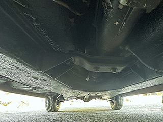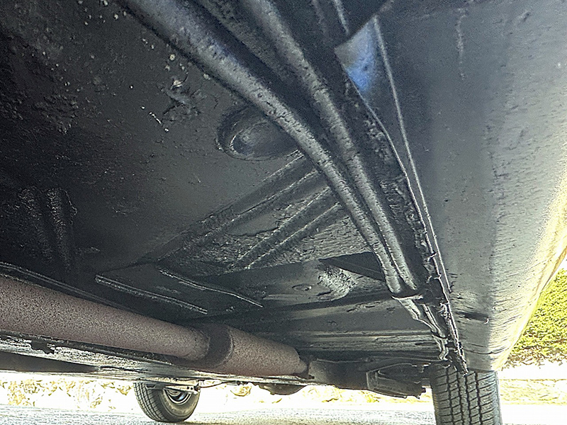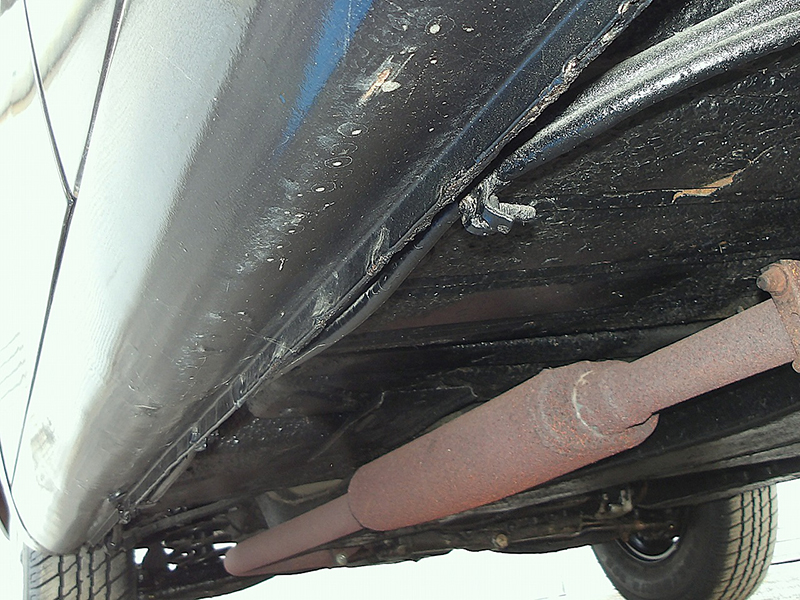 サイドシル下面の様子、若干の汚れが見られる程度で塗装面はしっかりとした状態です。別画像で一部に発生しているサビが確認できます。 |