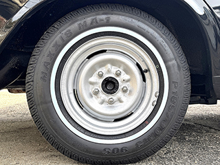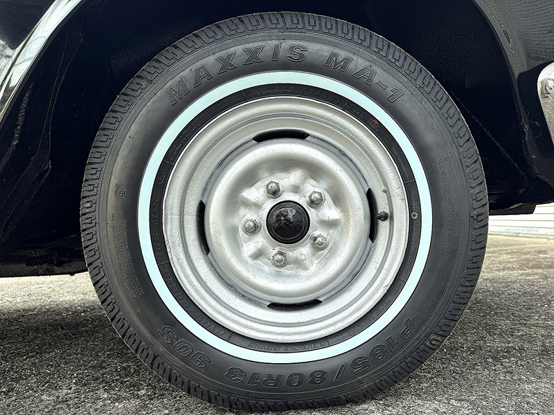 フロントタイヤ、MAXXIS MA-1 P185/80R13 90S M+Sです。ホワイトリボンがとても上品です。 |