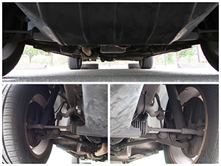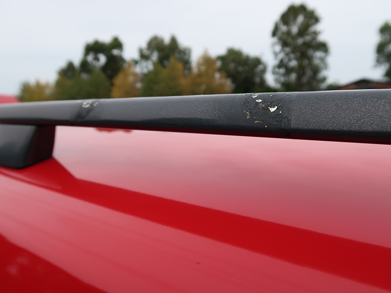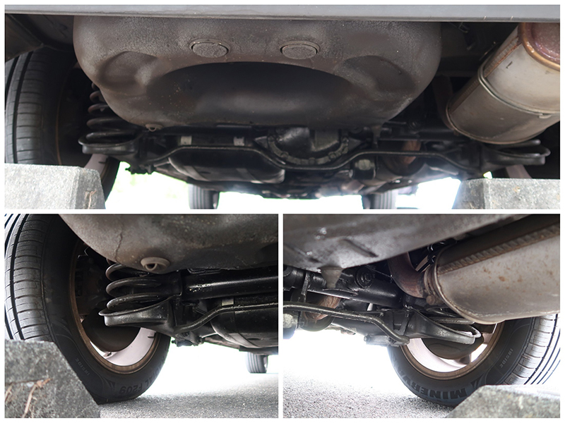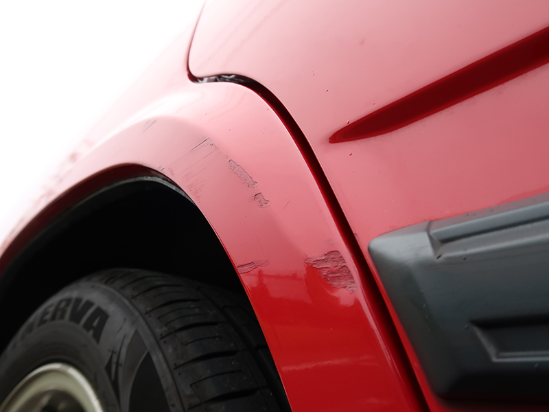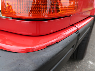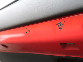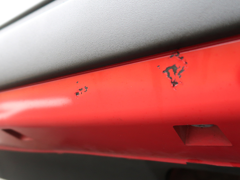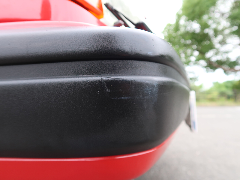 ・左フロントバンパーに塗装浮き、一部割れ箇所あり。