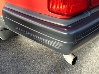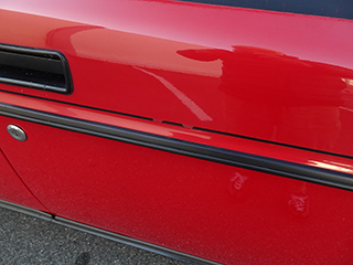 全体的にきれいな状態でした。ボディコーティングは2年1回の割合で実施していますのでクリアもあり、塗装もいい状態です。前後のバンパーは過去に塗装しているそうですが、擦りキズがフロントバンパー右、リヤパンパー左にありました。