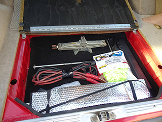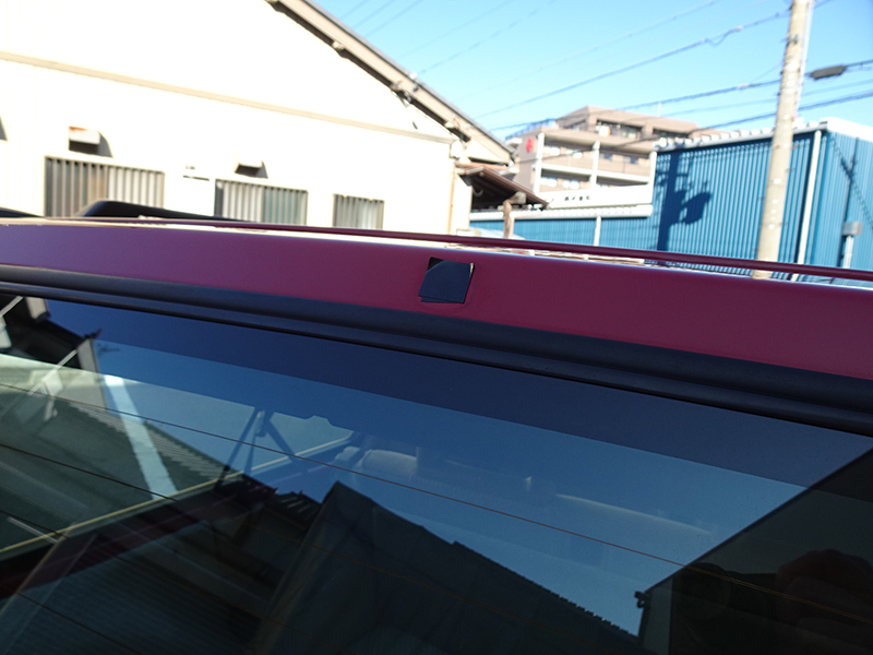リヤウォッシャーノズルが外れたため、ボディ面にビニールテープを貼り付けています。