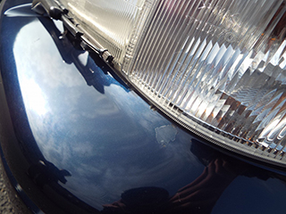 フロント左角上部にクリア剥がれが見受けられました。この場所は元々コーナーポールが取り付けられていたそうですが現在は取り外し保管しています。
