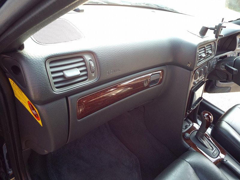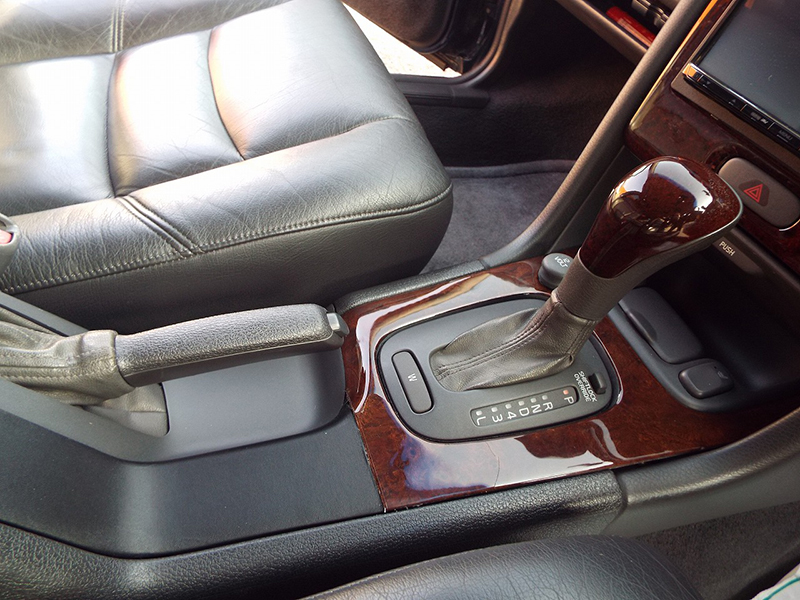 シフトノブの後ろサイドブレーキレバー横のウッドパネルに割れがありましたがレザーを貼って補修しております。違和感はなく仕上がっております。
