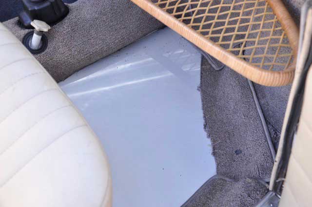エンジン・ボディはオーバーホール済みの個体で確かに全体によく手が入っている事がわかります、履歴は残っていませんが、数年前に丁寧に元色でオールペイントされたボディは、リアの曲面の一部に小さなクラックこそありますが艶も上々、塗りたてではないほんの少しやれた感じがとても雰囲気を醸し出しています。全体に程良い感じでローダウンされ、定番のCal-Lookスタイルでセンス良く仕上がっています。オーナー様の手元に来た時にはもう既にこのスタイルだったとのことですが、最初の洗礼とは、旧車ならではのフロアパネルの作り直しだったとの事、手元に来てから約半年かけてフロアパネルの板金交換作業、並びに幌の張り替え交換を実施され現在に至ります。