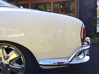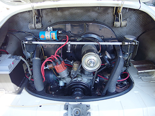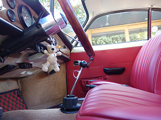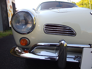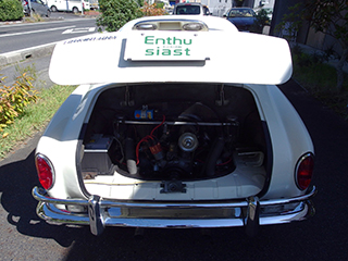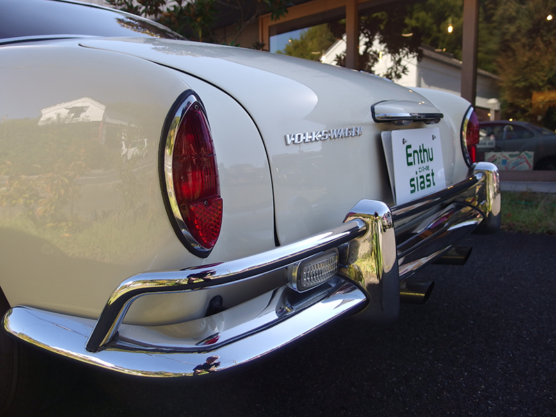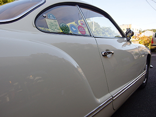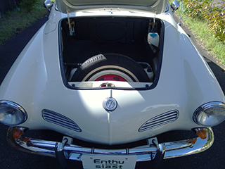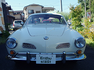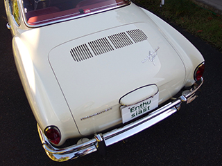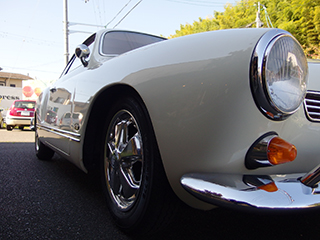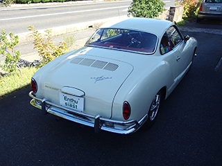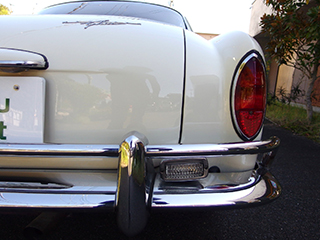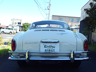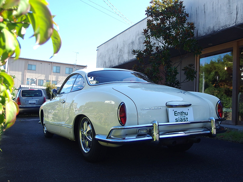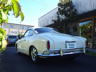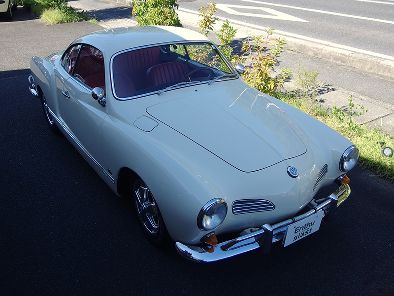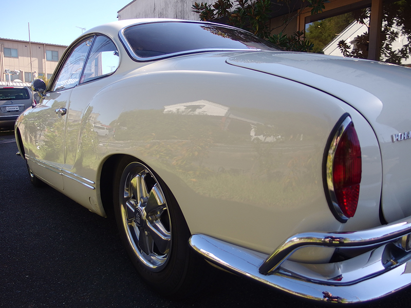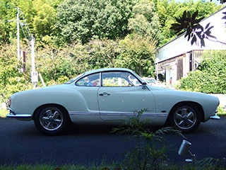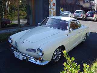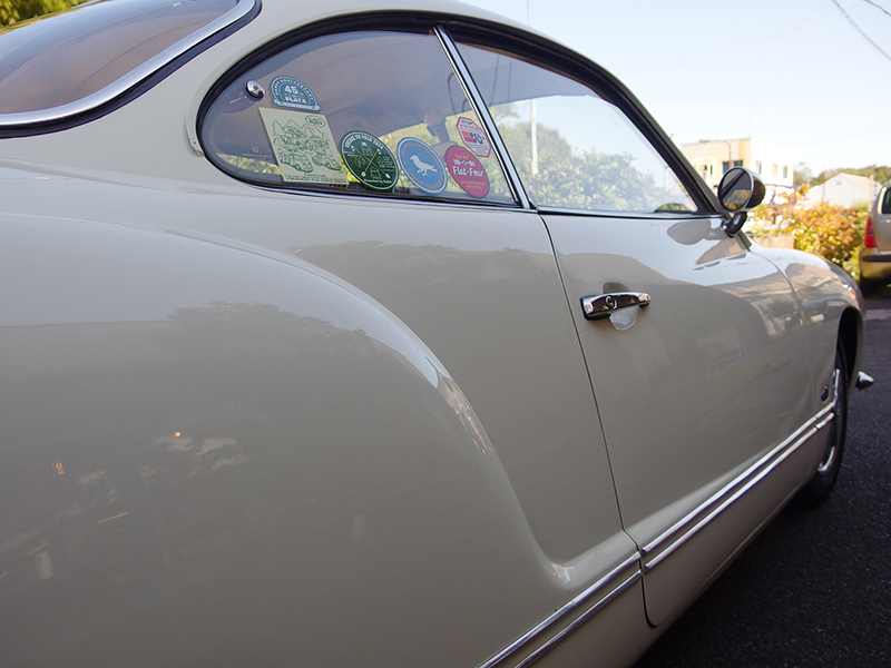 800kg台の軽い車重に1.5リッターのフラットフォーエンジン。ウェバーのツインキャブの良い音を聞きながら、クイックシフターで小気味よくシフトしていけば、粘りのあるエンジンでじわじわと加速していきます。車高も程よく低く安定感があり、60年代の車とは思えないドライビングフィール。乗り心地もなかなか良い感じで、車重の軽さが利いているようです。ドイツのカルマン社がVWタイプ1をベースにイタリアのギア社でデザインされたクーペボディを架装。そしてこの車両は1998年にカリフォルニアから輸入され、日本にやってきました。
