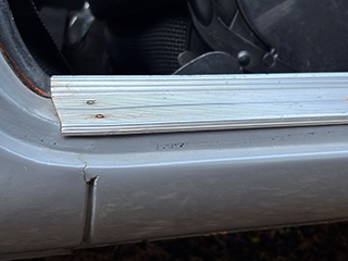巣が入ってきたフロントガラスは交換したそうです。前後にダブルバンパーを備えています。フロントバンパーには若干錆があります。
