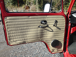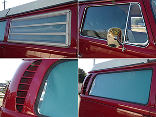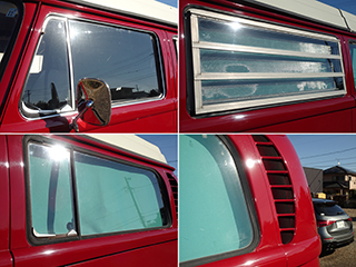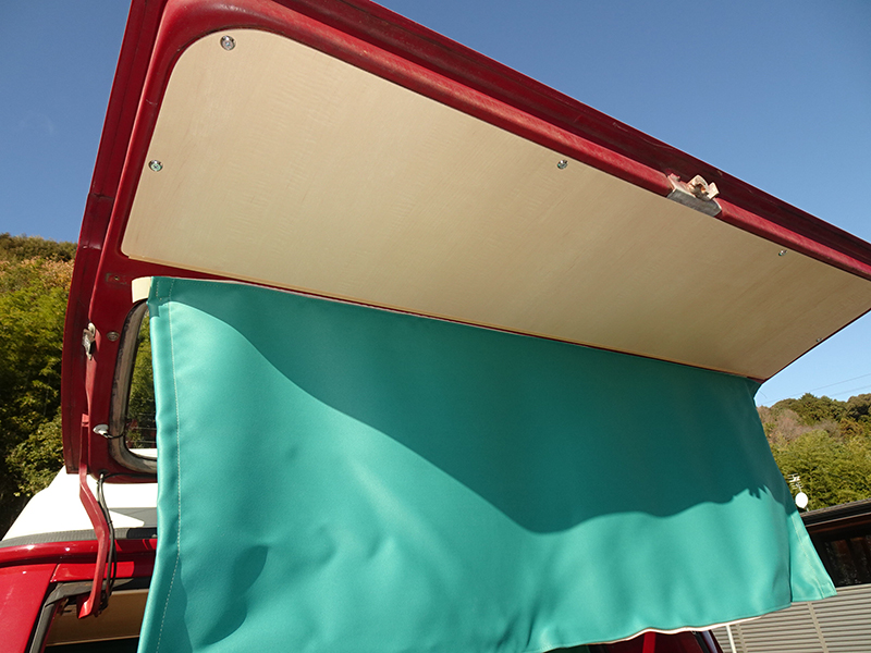リヤウインドウガラス、クウォーターウインドウガラス、テールゲートガラスにはマジックテープで取り外しが可能なビニールレザー製のカーテンが装備されています。