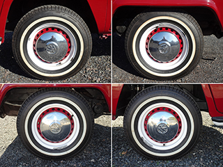 タイヤはホワイトリボンタイヤ、サイズは185R14です。