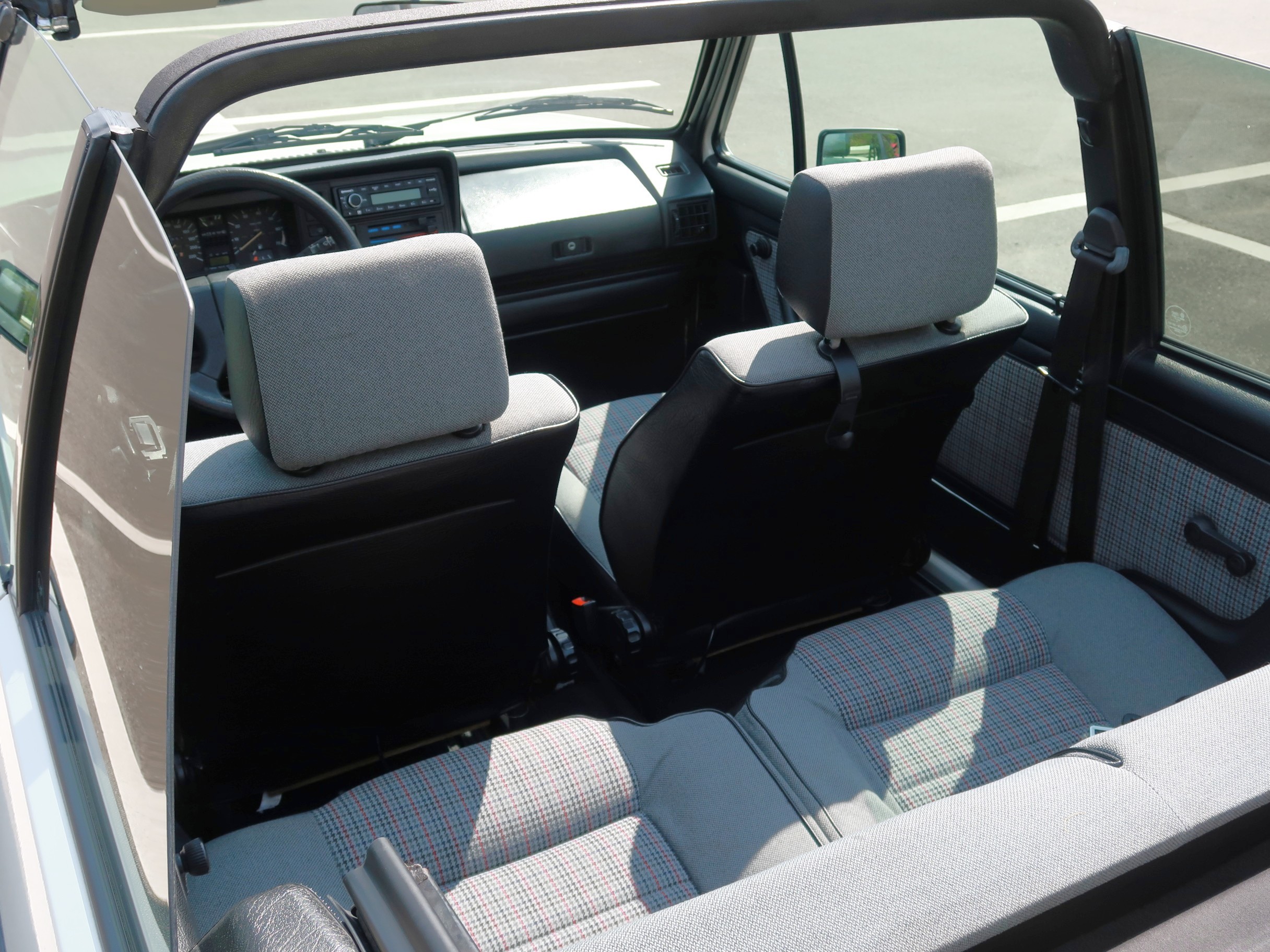 室内センターに設置されたロールバーが特徴のゴルフカブリオ |