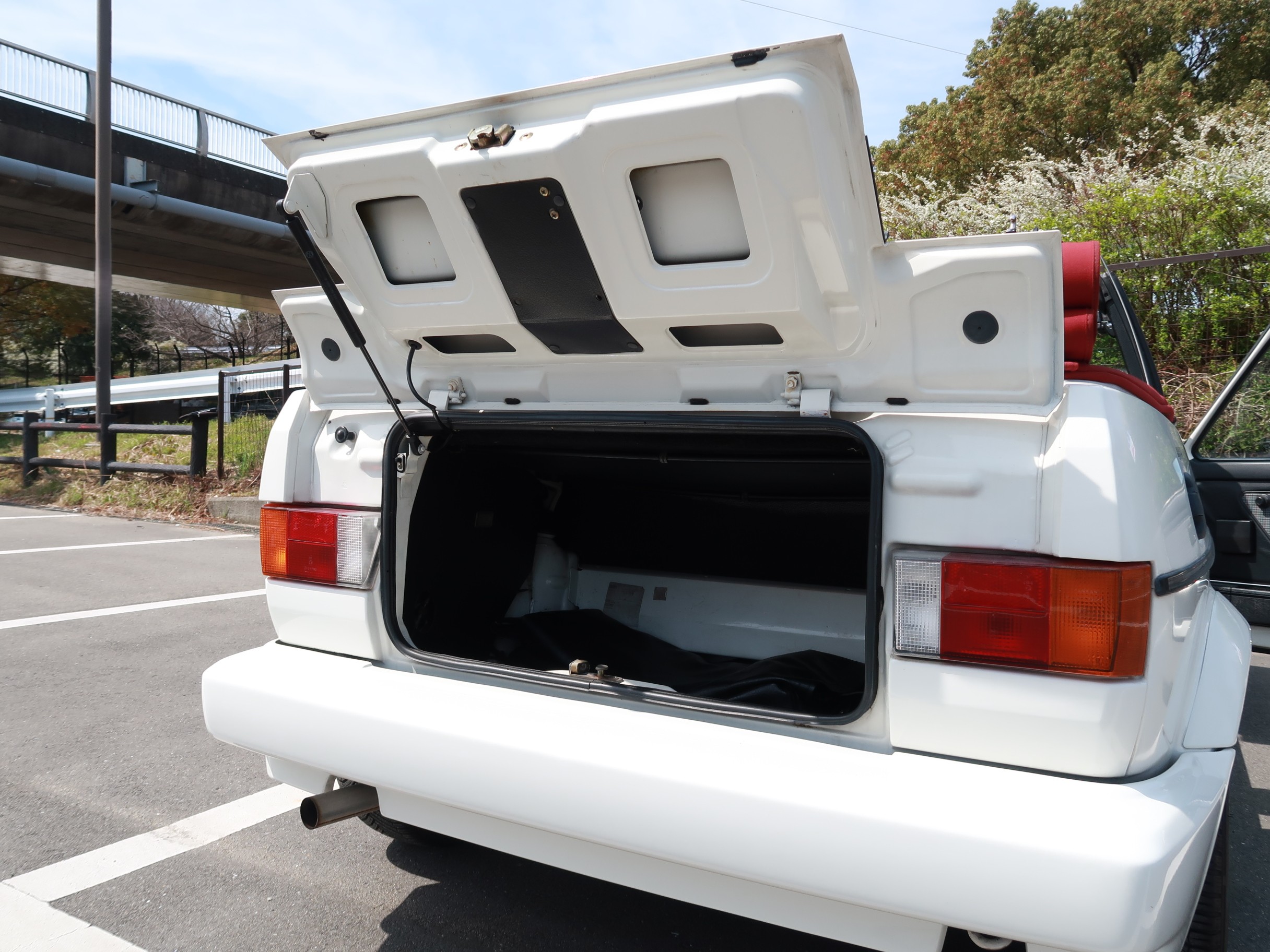 幌収納スペース確保のためこのような形状になったトランクフード。奥行がしっかりあり、さらにリアシートを倒せば長物も積めます。 |